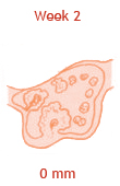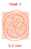 Het stipje in je buik groeit zo hard, dat het met het blote oog zichtbaar zou kunnen zijn. Inmiddels heeft het zich vermenigvuldigd tot enkele duizenden cellen. Onderling hebben die cellen het werk inmiddels verdeeld. De cellen die de baby gaan vormen bevinden zich aan één kant: de embryonale knoop. De cellen rondom de holte vormen over een paar weken de placenta die je kind negen maanden lang van voedsel zal voorzien. Weer een andere groep zorgt voor de vliezen. Over een paar dagen zal het trosje cellen dat je baby gaat worden zich in de baarmoeder nestelen. De eerste weken wordt je kind gevoed via de bloedvaten in de baarmoederwand.