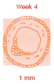 Het klompje cellen dat straks je baby wordt, heeft nu ongeveer de maat van een korrel rijst. Het begint zelfs al een beetje vorm te krijgen. Als je het goed zou bekijken, zou je een hoofdje en een staartje kunnen ontdekken. De ontwikkeling van je kind is fascinerend. Denk alleen maar eens aan alle lichaamsdelen waarvan we er twee hebben. Twee armen, twee ogen, twee longen, twee nieren… Ze ontstaan tegelijkertijd, maar door verschillende groepen cellen. Het is haast niet te geloven dat de ene groep voor het linkeroor zorgt, terwijl een andere groep een oor met dezelfde grootte en vorm voor de rechterkant ontwikkelt! Ondertussen wordt er alles aan gedaan om van je baarmoeder een veilig nestje te maken.