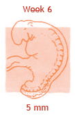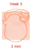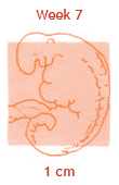 Het vruchtje wordt nu embryo genoemd en lijkt een beetje op een garnaaltje. Langzaam ontstaat er een duidelijk hoofdje en een nekje. Er zijn ook al beginnende oogjes die nog ver uit elkaar staan, bijna aan de zijkant van het hoofdje. In het midden van het gezichtje verschijnt het puntje van de neus. Op de echo is heel vaag de ruggengraat te zien. Er is ook al een bloedsomloop en er is een begin gemaakt met organen als lever en nieren en met het maag-darmsysteem. En, misschien wel het allerleukste om te weten, het hartje is gaan kloppen! Het kloppend hartje kun je zien op een echo via de vagina.