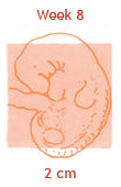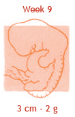 Vanaf deze week wordt er door de deskundigen niet meer over een embryo gesproken, maar over een foetus. Je kind kan al met de handjes (ter grootte van een erwt!) wriemelen en is in het bezit van een prachtig mopsneusje. Amper drie centimeter lang heeft hij inmiddels een echt menselijk gezicht gekregen, compleet met mondje en zelfs al een tong. Ook de armen zijn weer een stukje verder gegroeid en hebben nu handen met vingertjes. En de benen, die nu gaan groeien, hebben al knieën, enkels en tenen. Wist je dat de baby zich ook al kan bewegen? Maar dat kun je nu nog niet voelen.