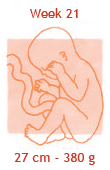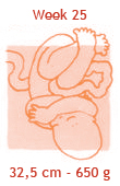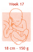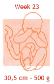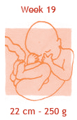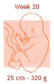 De donshaartjes van een aantal weken geleden vallen nu langzaam uit. Daarvoor in de plaats komen iets grovere haren, vooral op het hoofdje. Bij elke zwangerschapscontrole zal de verloskundige je buik aftasten om de hoogte van je baarmoeder te bepalen. Als het goed is, is de baarmoeder nu al zo ver uitgerekt, dat de verloskundige deze net onder je navel kan voelen. Als het goed is, zit je baby nu al bijna op de helft van zijn uiteindelijke lengte. En als je een heel atletisch typje draagt, zuigt hij nu met evenveel gemak op de voetjes als op de handjes!